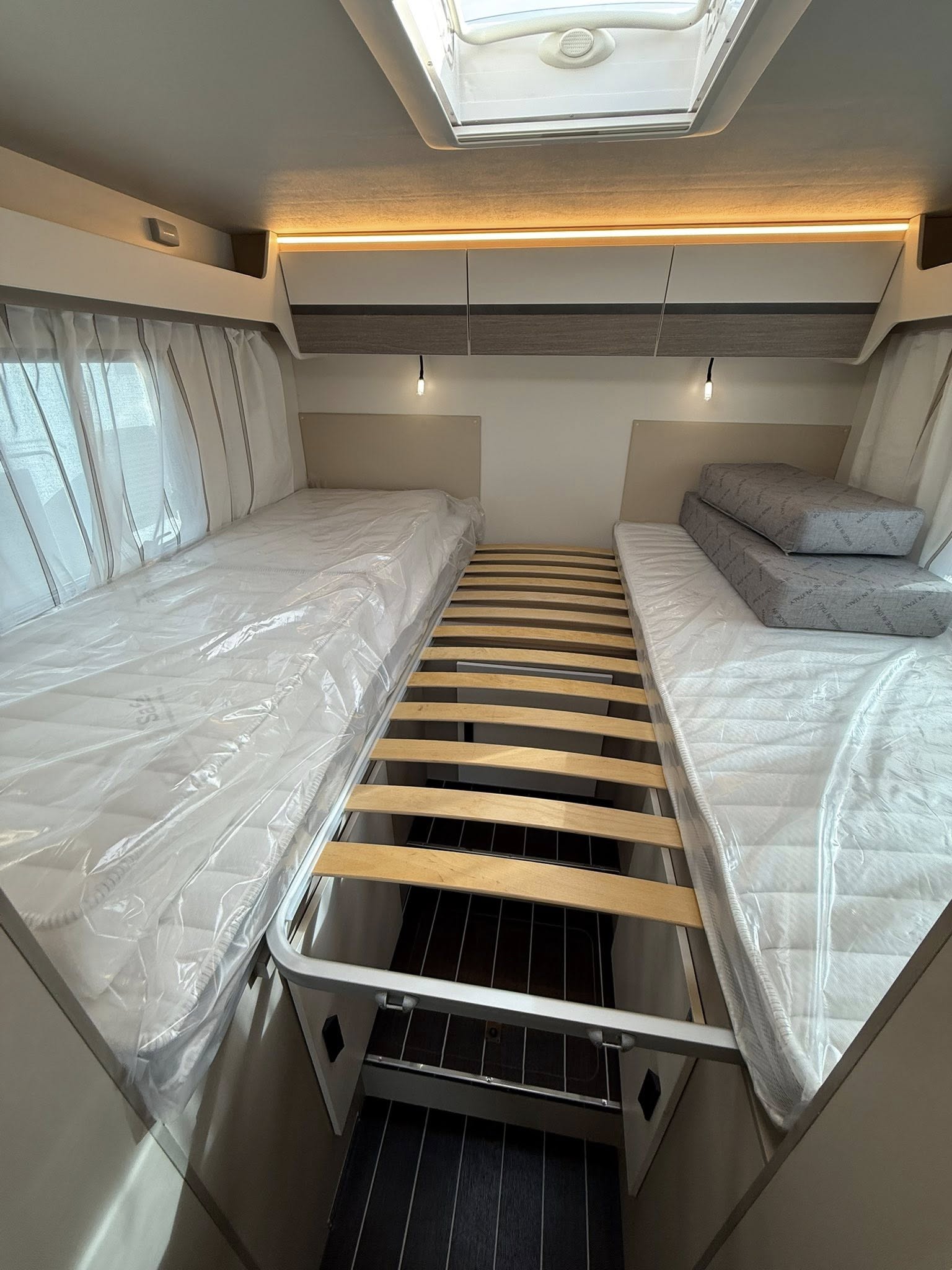 - Lits jumeaux permettant une soute XXL (chargement vélo, …)